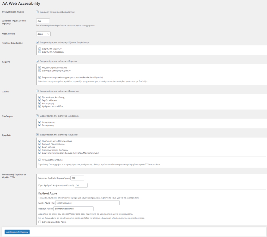 Απενεργοποίηση Κινήσεων